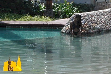 chuck wow was in town on business, and stopped by the nanacabana to say hello. he had other deals to pursue so he didn't stay long, but it was nice to have him stop by. as the day wore on, we would take a dip in the pool every so often just to cool down a little. sip might not have been a good swimmer (she stayed away from the deeper parts), so she would climb on my back and i would give her a ride around the pool. of course we would stop at the swim up bar to have a drink every time we passed. must keep our fluid intake up, you know.