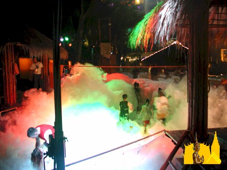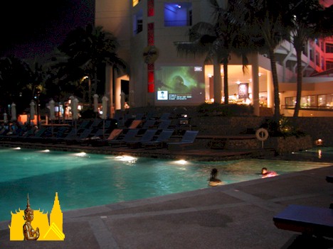 every saturday night the hard rock hotel has a party called saturday night at the drive-in. they use a projection tv to called saturday night at the drive-in. they use a projection tv to show movies on the side of the hotel. one can sit on the pool-side chairs or relax in the pool while watching the movies. of course, full bar and kitchen service is available.