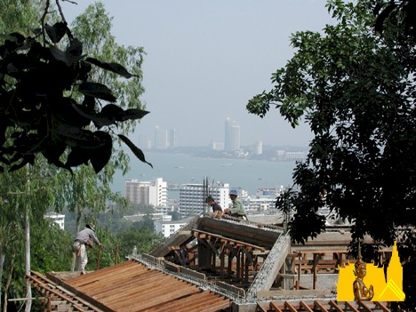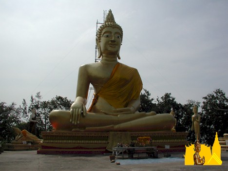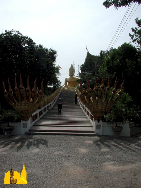 we climb the steps to the giant buddha where song stops and offers a wai. i ask song if she wants to make merit, and she nods her head yes. the smallest bill i have is 100 baht, which is handed to song. the note is greeted with a wai, and then i get a big hug and a sniff before she turns to go into the temple.