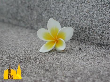 on the climb up to the top, i noticed a flower had fallen on the steps to one of the temples.