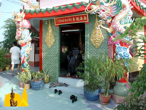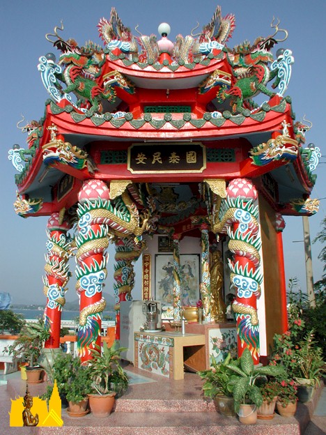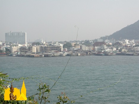 the master of ceremonies stopped the show to ask for two volunteers from the audience; one man and one woman. the mc had the man lay on his back; and the woman on her stomach. a large elephant walked over to the woman, raised a giant foot, and began to massage her rear end with his foot much to the delight of the audience. not to be outdone, another elephant lumbered over to the man lying on his back and used its trunk to help the man relax in a completely different way. an elephant bl*w-j*b? the audience went wild with that one! we exited the tiger zoo and found hah? father sitting behind the shrine with a bunch of other drivers. it looked to me like the drivers of the tour buses were enjoying a snort or two of mekong. not a comforting thought as i sometimes like to take bus tours. the drive through the city of sri racha was very nice. i enjoy seeing new places and watching people go through their daily lives. it? also nice to see a little of the country away from the bar scene. the bar scene is ok at night, but i just can? keep at it 24/7 anymore. a couple hundred yards off the coast of sri racha is the tiny island of koh loy sri racha. a bridge allows us to drive on to the island. while driving on the bridge, we noticed many fishing boats moored to the side. the island is relatively small; prolly less than 2 acres, and has a good-sized hill on it. there is a temple complex made up of a dozen or so temples that on the outside exhibit a more chinese influence. we got to the island just behind a japanese tour bus, so the steps to the top of the hill were a little crowed. a lot of the older japanese couldn? make it up the steps, and when we finally made it to the top, we were pretty much left alone.